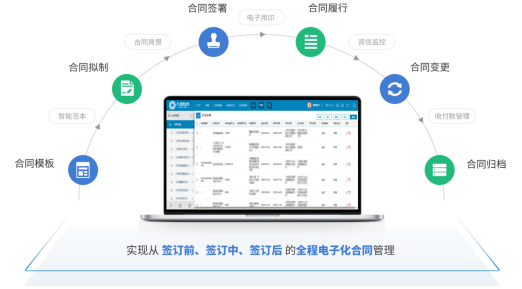 合同實現全程電子化管理,從合同起草、流轉審批、簽署用印、存證歸檔到履約過程中的變更、查詢、統計,整個合同管理過程實現全程電子化