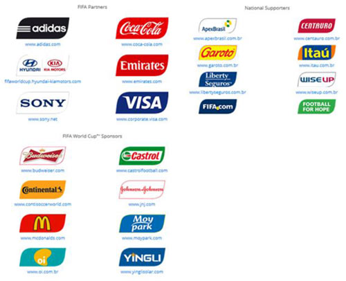 以下是FIFA世界杯網站上列出的合作伙伴、贊助商和擁護者, 而它們有可能面臨攻擊。在接近攻擊發起時,可能還會增加更多的目標企業。
