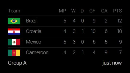 此外,谷歌更新了Google Now智能語音助手,專門添加了“世界杯”選項,用戶可以在Google Glass上追蹤世界杯動態,并獲得重要資訊的提醒。