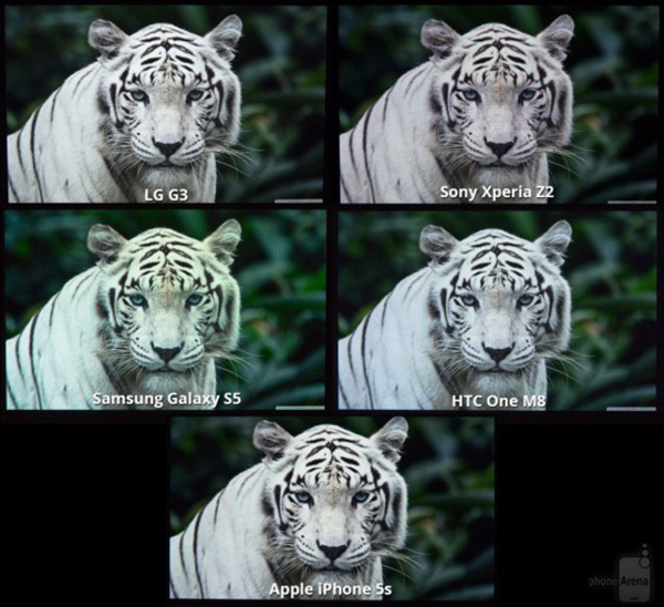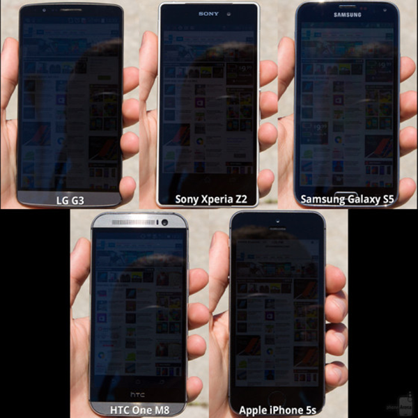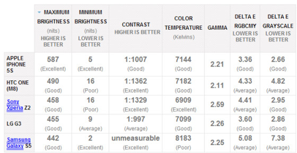 按照 phonearena最終評分,iPhone 5s、HTC One (M8)和Xperia Z2最終平均分都為8.16,LG G3屏幕的得分是8分,而三星S5則為7.33分。
