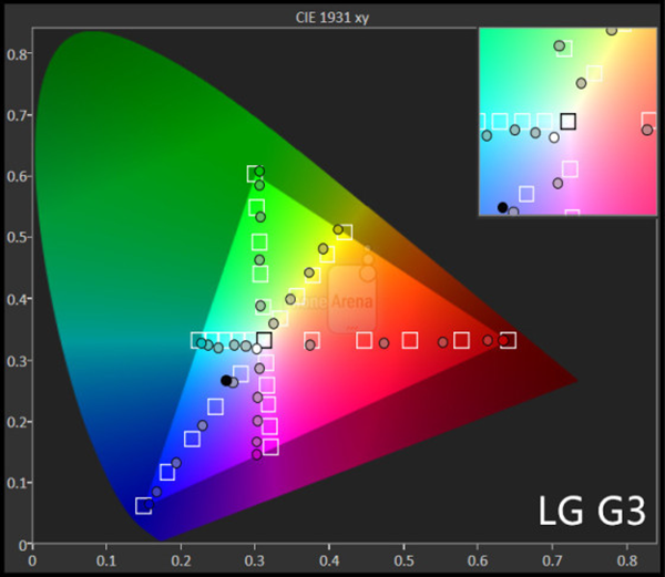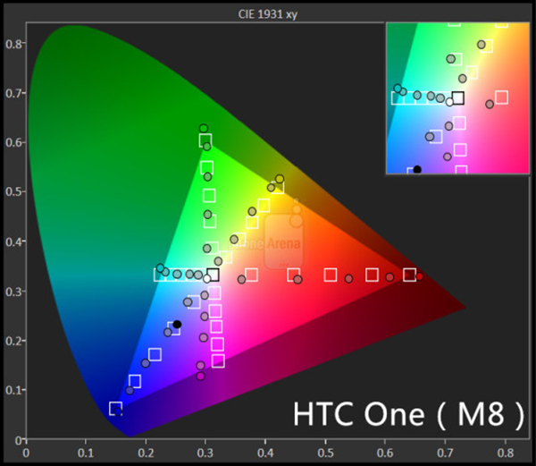 色溫是影響手機觀感的一個重要因素,其中因為供應商不同等因素,單款產品的不同批次之間也往往有著顯著區別。在phonearena的評測中,以一般意義上的標準白色光色溫6500K為基準,越接近則成績越好。