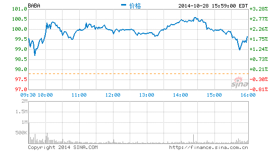 阿里巴巴集團股價周二報收于99.75美元,漲幅為2.00%,盤中曾觸及100.67美元的高點。與9月份每股68美元的IPO(首次公開招股)價格相比,該股已經上漲了47%。在馬云的領導下,阿里巴巴集團一直都在迅速增長,原因是越來越多的消費者轉向在線購物。