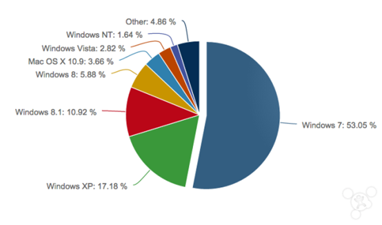 除此之外,目前市場占比最高的 Windows 7 依然堅挺如柱,坐擁 53.05% 的份額笑傲半壁 OS 江山。另外,Windows Vista 則漸漸退出市場,目前份額已低至 2.82%,而 Windows NT 則僅以 1.64% 排在更末位。