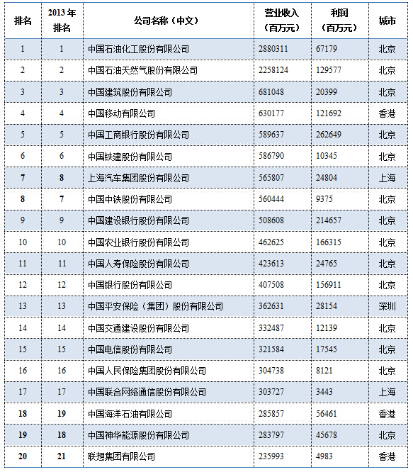 新華網消息 7月14日消息,財富中文網發布中國500強排行榜。中移動以營收6301億元居榜單第四,電信、聯通分居15、17位;聯想集團營收2400億元,位居榜單20位。此外,京東,唯品會首次躋身中國500強,分別排名79位和421位。