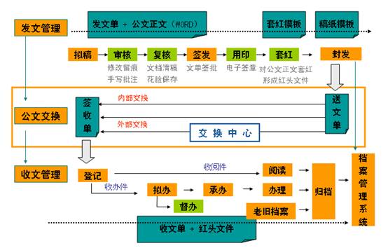 公文管理OA解決方案實(shí)現(xiàn)了收文管理和發(fā)文管理的自動(dòng)化,功能包括我的收文、發(fā)文擬稿、發(fā)文草稿、發(fā)文查閱、發(fā)文設(shè)置、簽收公文、收文查閱、收文設(shè)置等,并且公文的正文支持修改留痕、手寫簽名、套紅頭、簽章等各種應(yīng)用。可靈活設(shè)定公文流程,自動(dòng)進(jìn)行流程跟蹤、催辦、查辦,并可歸類存檔和檢索,其應(yīng)用架構(gòu)圖如下:
